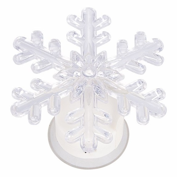 Светодиодная фигурка выполнена из пластика в виде снежинки c красивым узором. В центре фигуры расположен яркий RGB светодиод, который непрерывно меняет цвет свечения в пределах 256 цветов! С тыльной стороны фигуры прикреплен блок питания с батарейками типа CR2032. К блоку питания прикреплена присоска, которая позволит прикрепить фигуру на окно, зеркало, или любую другую ровную поверхность.